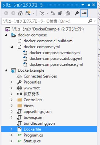 タイトルだけで言いたいことは以上なんですが、Visual Studio 2017でASP.NET Coreプロジェクトを作ってdockerサポートを有効化すると、こんな風にdocker-composeプロジェクトが作られてDocker for Windowsの上のDockerコンテナを使ってデバッグ実行ができる…