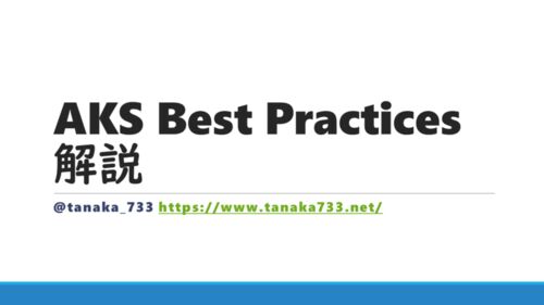 あのチャンネルにおじゃまして、AKSベストプラクティス解説という動画を公開しました。全4回の予定です。 www.youtube.com こちらで公開されているMicrosoftのAKSベストプラクティスについて解説しているので、PCなどでご覧の方はぜひあわせてごらんになって…